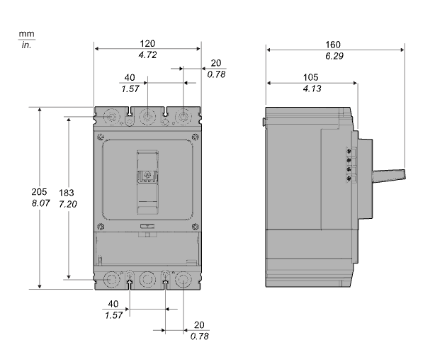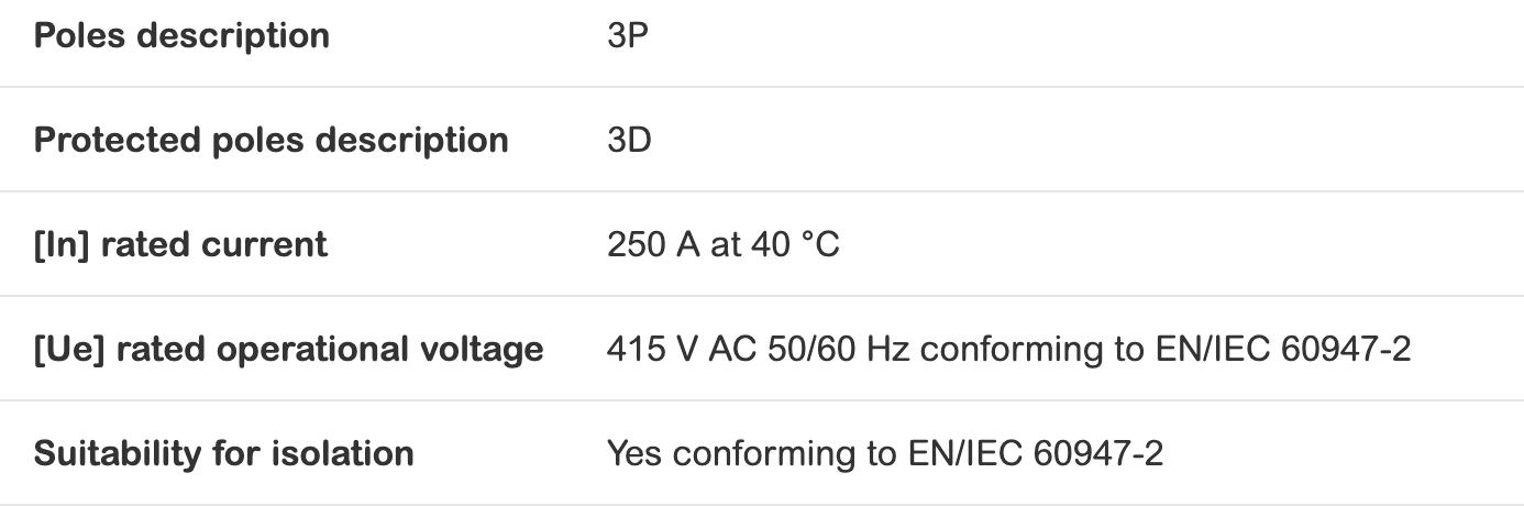 إنه قاطع دائرة 3 أعمدة كاملة مصنوعة من إطار 400A للكسارة ووحدة رحلة مغناطيسية حرارية (TMD). لدى MCCB نسبة أداء جيدة للسعر للتطبيقات الأساسية ويوفر حماية كهربائية موثوقة لتطبيقاتك. قدرة كسر (ICU) هي 36KA RMS في 415VAC 50/60Hz. الجهد التشغيلي هو 415VAC 50/60Hz. يضمن هذا المنتج وحدة الرحلة الحرارية (في) تصنيف 250A (TMD). توفر وحدة الرحلة TMD هذه IR الحماية الحرارية القابلة للتعديل (ضد الأحمال الزائدة) مع نطاق إعداد من 0.7xin إلى 1xin (175a-250a). ويوفر حماية مغناطيسية ثابتة (ضد الدوائر القصيرة) المحددة إلى 12xin (3000A). يأتي MCCB مع مجموعة متنوعة من الملحقات الاختيارية بسيطة للاختيار والتثبيت. أبعاد المنتج 120 مم (العرض) × 205 مم (ارتفاع) × 105 مم (عمق). الوزن هو 3.5 كجم.
